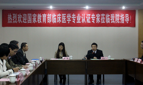 当日下午,专家与附属医院的领导、临床教学管理人员及临床教师座谈交流,主要了解医院老师在临床教学、实践实习等涉及人才培养的情况;与高年级学生召开座谈会,询问学生在专业培养和专业技能掌握方面等内容。