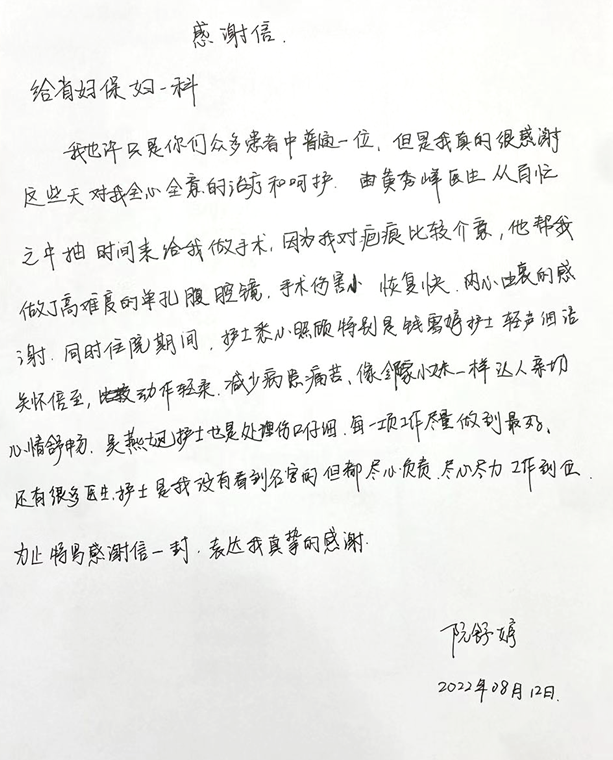 实习是学生成长发展的关键阶段,护理系学生在实习阶段的行为也是校园教育的综合体现。护理系19级学生在实习当中的表现获得患者认可,获得感谢信。