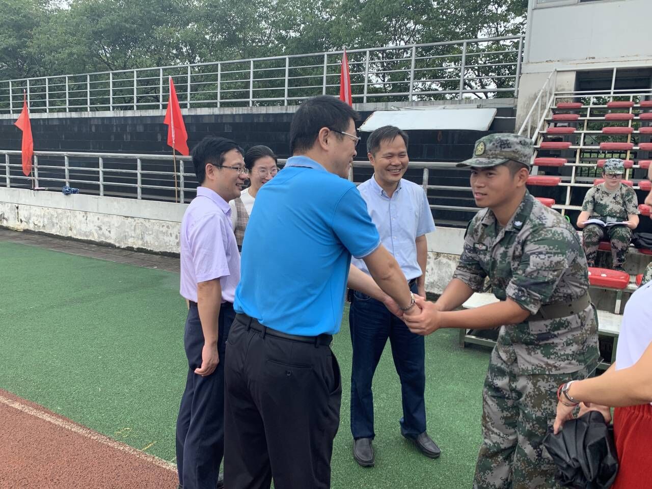 秋风如歌,9月6日上午,院党委书记夏瑞明、常务副院长葛建荣、党委副书记金坚强,在学生科相关人员陪同下来到绿茵场,走访慰问了参训学生与教官。