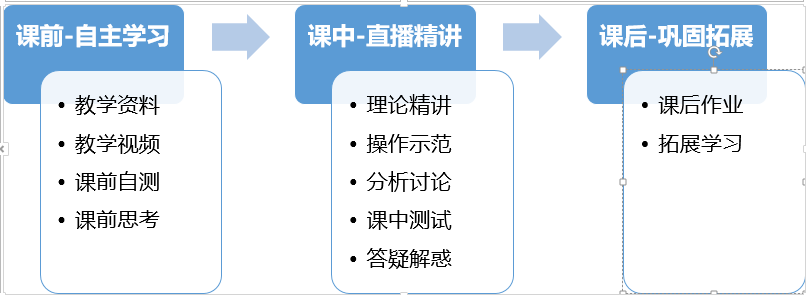 经过各大教学资源与直播平台的试用,并借鉴教学同行的经验分享,最终选择了超星学习通用于课程资源的发布,完成课前的预习、课后的复习,课堂的讨论与测试评价学生学习效果、课后作业递交等用于课程的巩固并进行适当拓展。