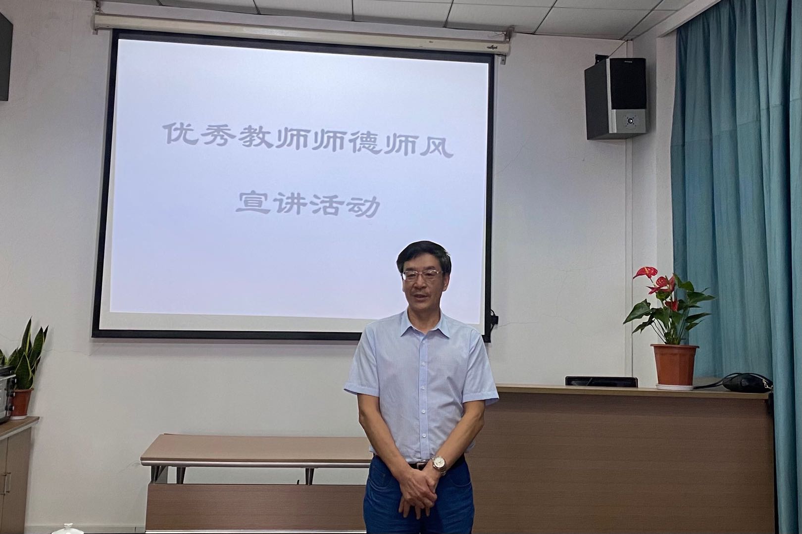 6月24日,学院举行优秀教师师德师风宣讲暨师德专题学习研讨活动,这也是学院师德专题教育“八个一”活动。院党委书记夏瑞明、党委副书记金坚强、副院长陈三妹,教师发展中心主任刘文庆,新医科教育研究所主任俞朝阳,部分中层干部、青年教师参加活动。