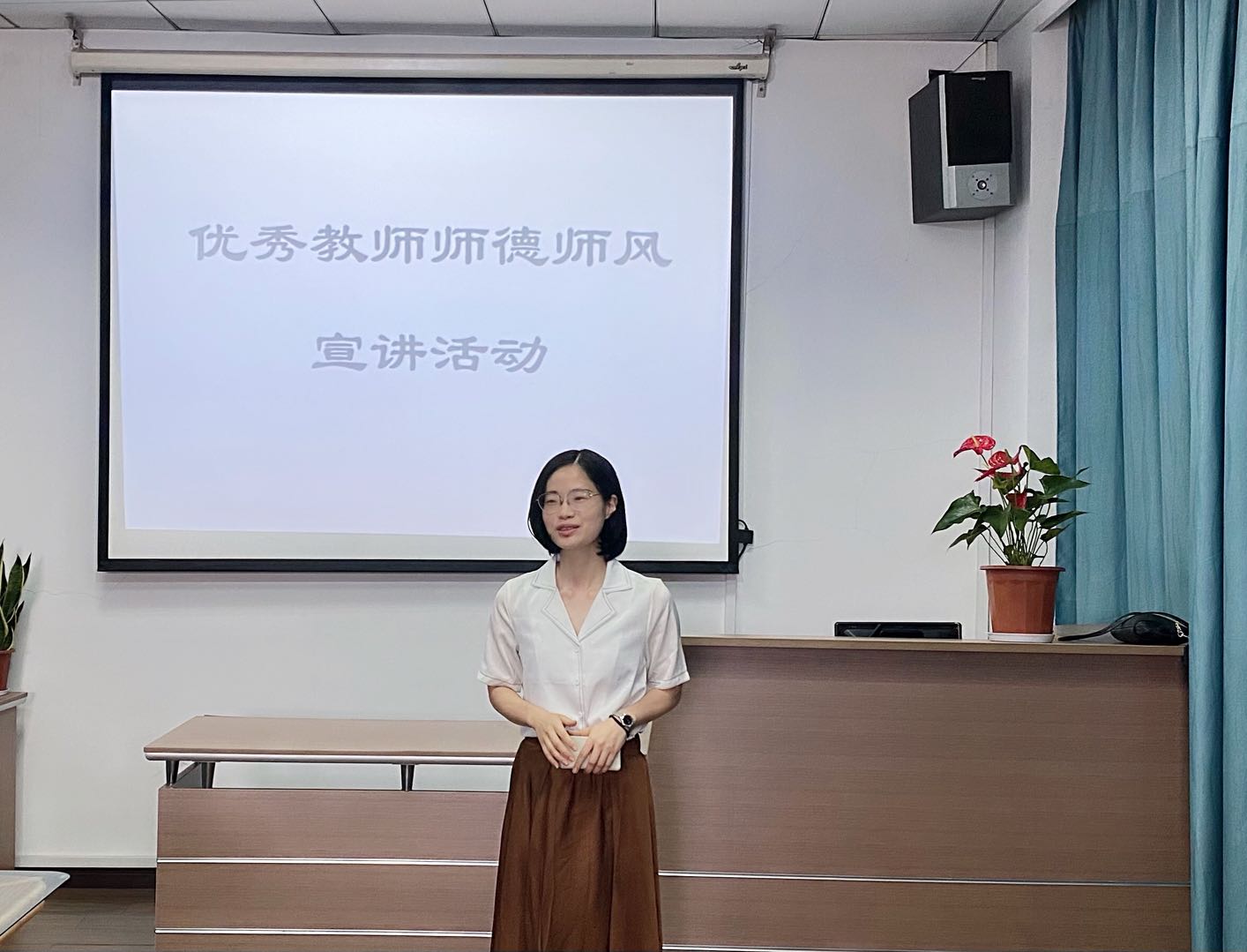 浙江省“三育人”岗位建功先进个人、校第五届教学名师陈三妹,刘学红、金欣等优秀教师代表发言。陈三妹老师结合从教三十年的经历从学高为师、身正为范、师爱为魂三个方面进行了宣讲,作为一名教师要注重提高自我专业知识的宽度、厚度和灵活度,用好各类教学方法和手段,注重知识的传递;作为一名教师身教重于言教,要保持正直、善良、诚信等品质;作为一名教师要爱学生,爱在细微处、严在该严处。刘学红老师作为学生科研项目的优秀指导老师,和大家畅谈了如何激发学生的内在潜力,助力学生在考研、学习道路上成长成才。金欣老师则指出教师在自我成长的同时要能看到学生,激发学生的内驱力。