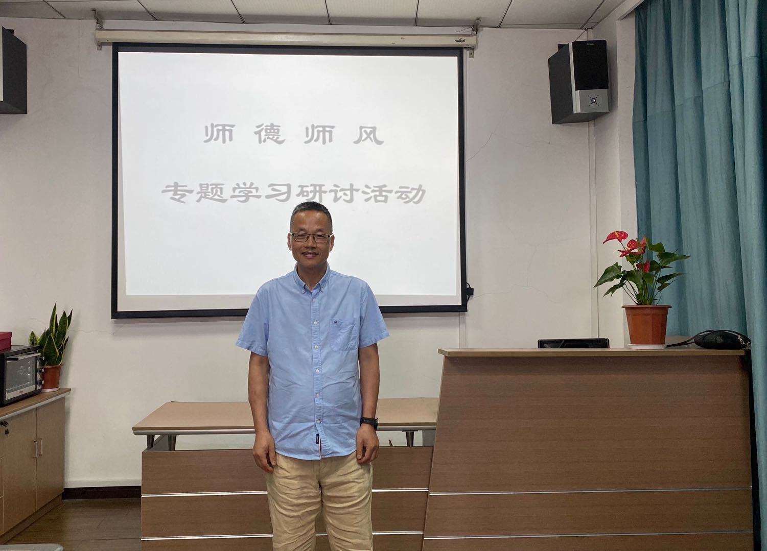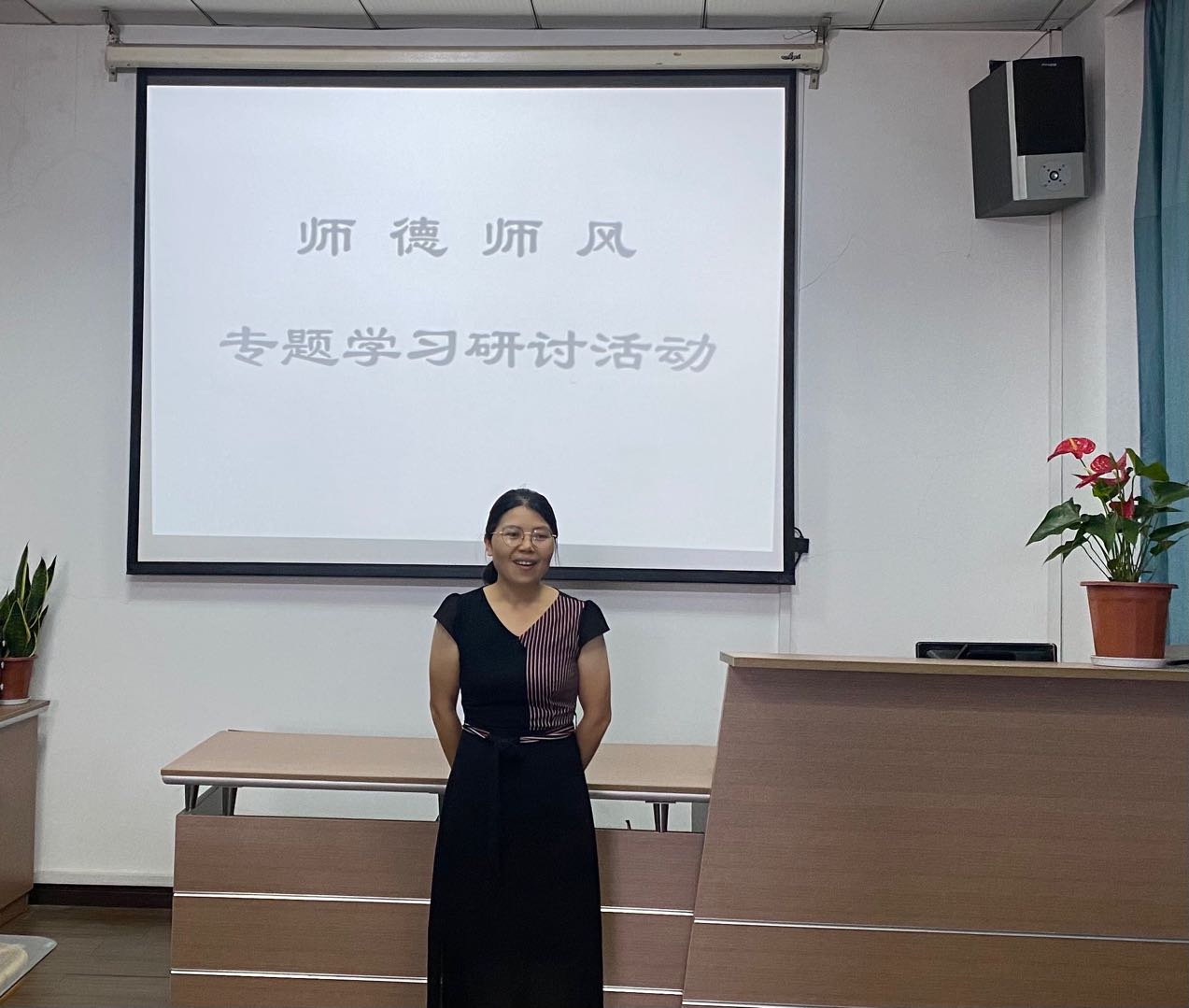 俞朝阳老师从课程思政的角度畅谈了课程思政教学实践与教师师德之间的相关性、必要性和重要性。谢小燕老师作为青年教师代表和大家分享了课程思政教学实践过程中的收获和感悟。