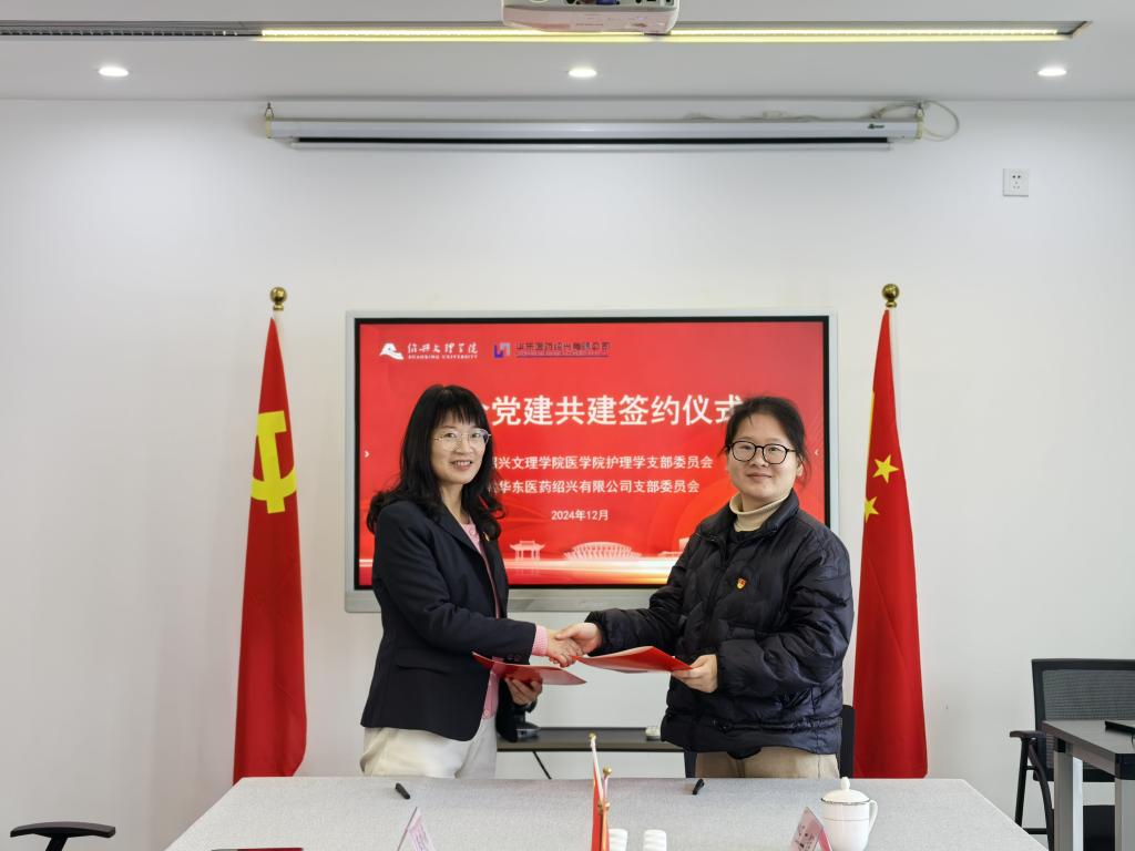 12月27日上午,学院护理学党支部与华东医药绍兴有限公司党支部在华东医药绍兴有限公司举行校企党建共建协议签订仪式。学院党委副书记林国旗带队出席,华东医药绍兴有限公司副总经理、党支部书记孙秀英主持签约仪式。