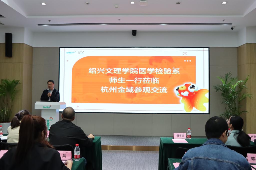 为开拓学生视野,了解医学检验领域发展态势,医学检验系于11月6日组织医学检验技术专业241班全体学生以及部分教师赴杭州金域医学检验所有限公司(杭州金域)进行实地教学,本次活动是《医学检验导论》课程实践教学的一部分,也是2024级新生始业教育的一个重要环节。本次活动得到了杭州金域方面的大力支持,公司副总经理祝宇翀、人力资源部经理高爱平以及员工代表等出席。