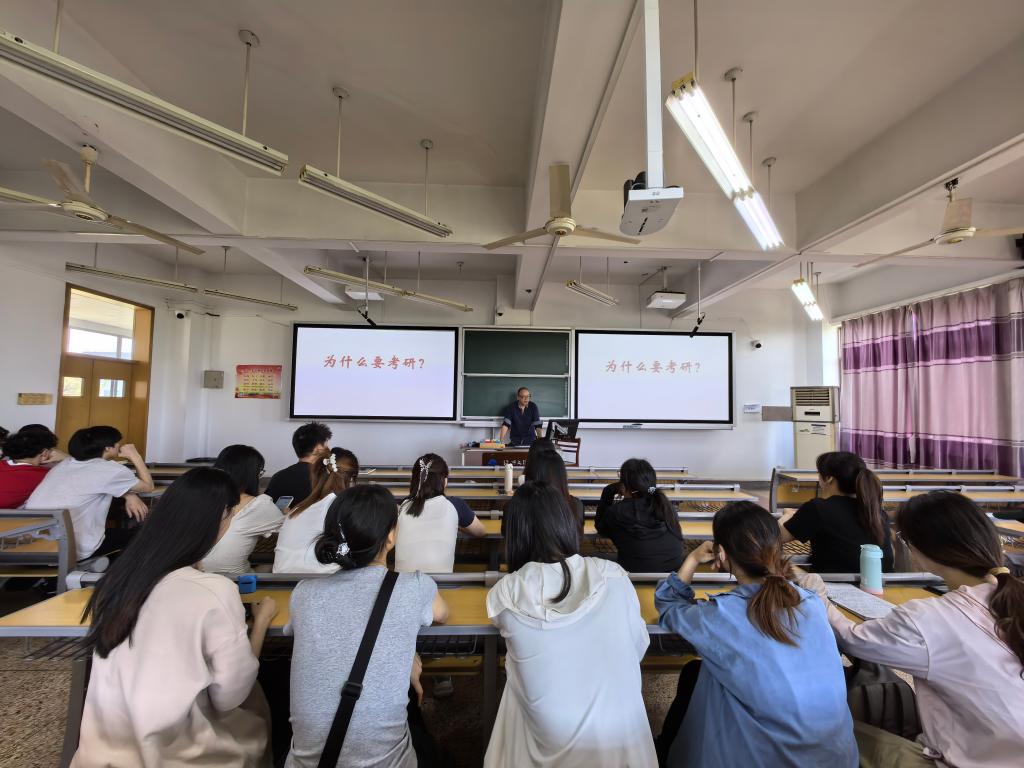 会议伊始,张建华教授围绕“为何考研”展开主题讲话。他指出,当前医学检验领域,研究生学历已成为优质岗位的“敲门砖”。他结合近年就业数据,分析行业发展趋势,强调考研不仅是深化专业能力的途径,更是提升职业竞争力的关键选择。“希望同学们锚定目标、科学规划,将个人发展与行业需求紧密结合。”张主任的发言为在场学子注入一剂“强心针”。