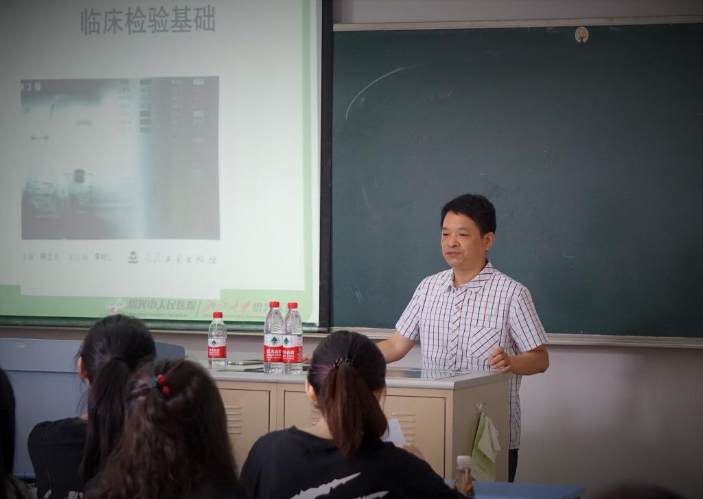 为贯彻落实学校提出的“业界精英进课堂”,加强校院合作、产教融合应用型人才培养工作,6月8日上午,绍兴市人民医院临床检验中心葛国兴主任技师受邀来我系作专题报告,题目是《临检基础在医院应用及血液细胞质量控制》,这次活动是医学检验技术专业《临床检验基础》课程教学中的重要一环节,医检151班全体学生以及部分医检141班学生、教师参与听讲。