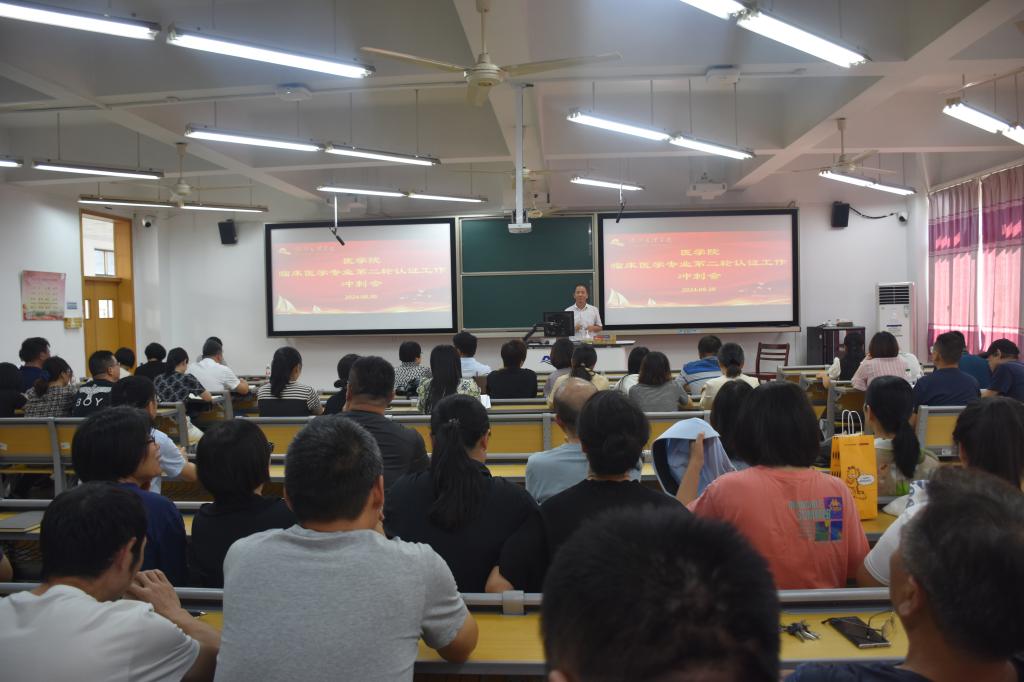 8月30日,学院临床医学专业第二轮认证工作冲刺会举行。学校副校长柳国庆、学院党政领导班子成员、基础医学部全体教师、临床医学部全体教师、医学影像系全体教师、医学实验中心全体人员,以及认证督导组、认证工作领导小组、认证相关教研室和行政科室全体人员参加会议。