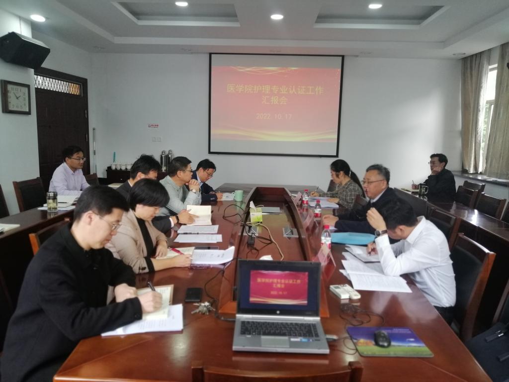 副院长张剑就护理学专业认证工作的进展情况进行汇报;护理系主任孙一勤就护理专业专家汇报PPT进行简介。