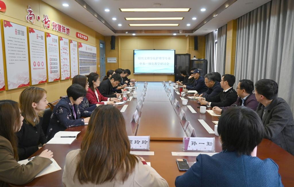 11月25日下午,副校长柳国庆在校教务处处长方小利、校学工部副部长郑德祥、院党委副书记金坚强等陪同下一行10人赴绍兴护士学校开展“中本一体化”培养教学检查工作。诸暨市卫健局副局长俞明、绍兴护士学校党总支书记俞莉、副校长寿菲及相关科室负责人参加检查汇报会。