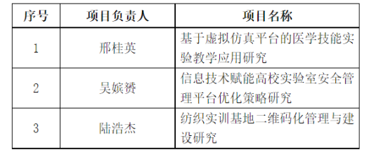 根据《关于组织申报2023年浙江省高校实验室工作研究项目的通知》安排和要求,依据研究分会申报常规项目限报3项的名额规定,经教师个人申报,学校组织专家评审,现对《基于虚拟仿真平台的医学技能实验教学应用研究》等3个项目拟推荐申报2023年浙江省高校实验室工作研究项目予以公示,具体如下: