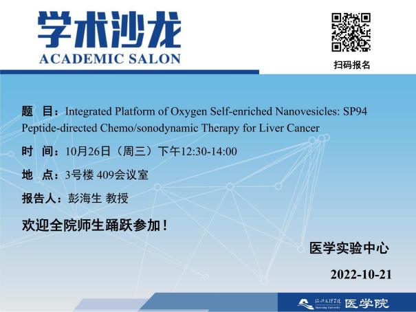 【学术沙龙】Integrated Platform of Oxygen Self-enriched Nanovesicles: SP94 Peptide-directed Chemo/sonodynamic Therapy for Liver Cancer