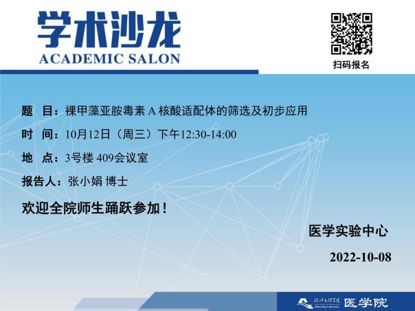 【学术沙龙】裸甲藻亚胺毒素A核酸适配体的筛选及初步应用