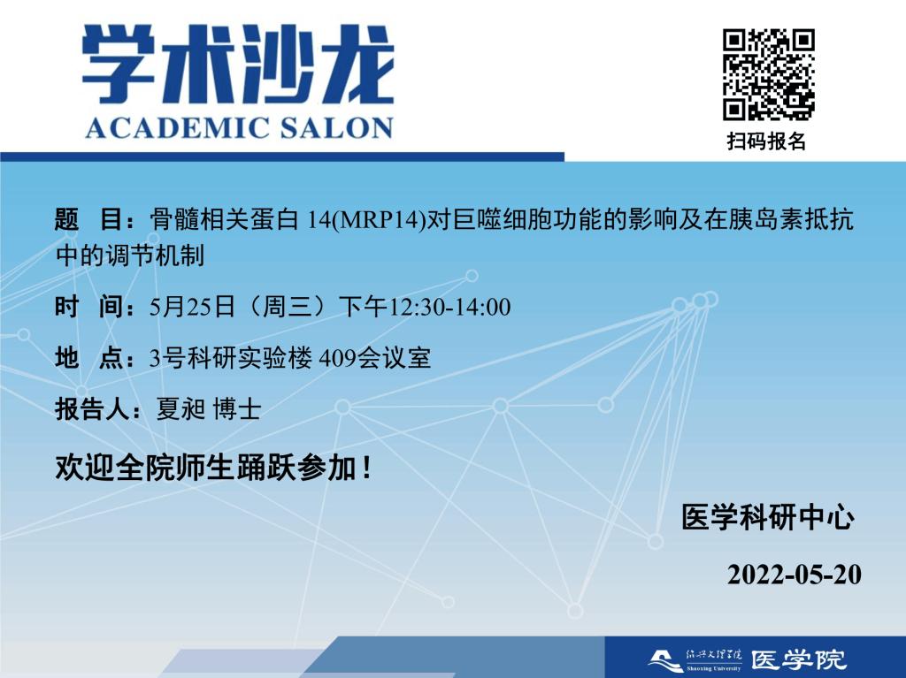 【学术沙龙】骨髓相关蛋白14(MRP14)的巨噬细胞功能的影响及在胰岛素抵抗中的调节机制