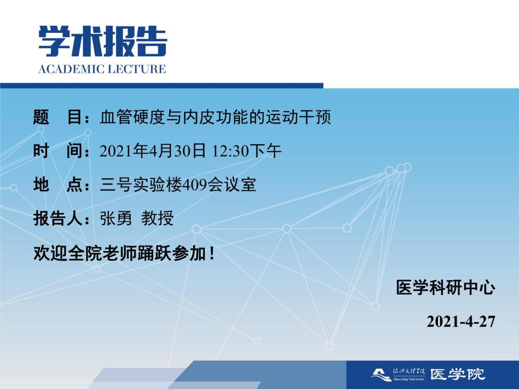【学术沙龙】血管硬度与内皮功能的运动干预