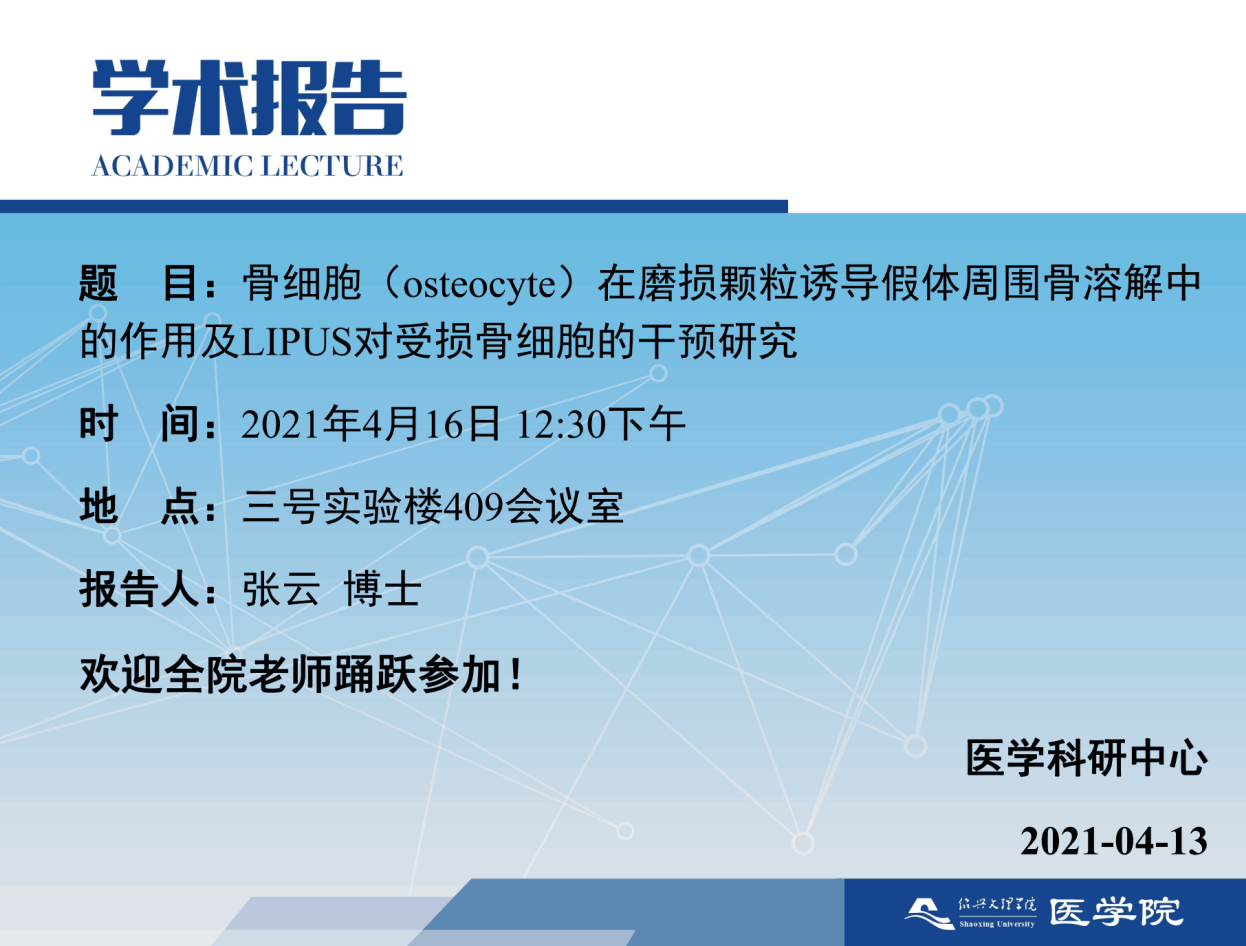 【学术沙龙】磨损颗粒诱导假体周围骨细胞(osteocyte)损伤及LIPUS对受损骨细胞的修复作用研究