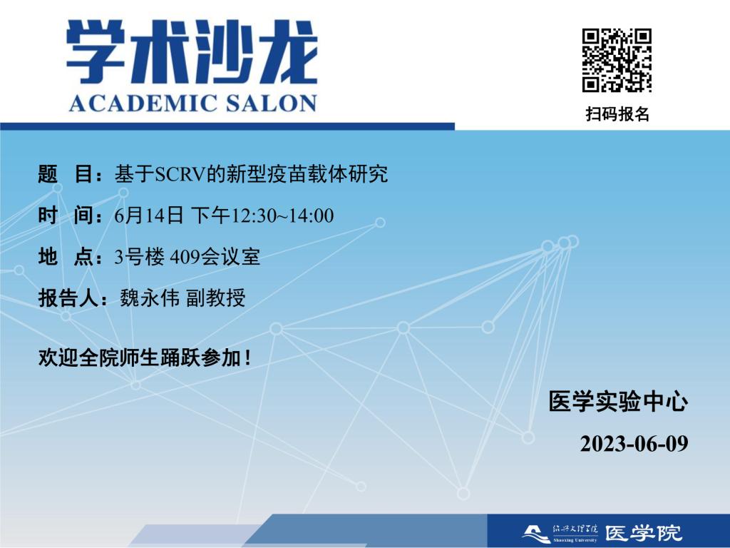 【学术沙龙】基于SCRV的新型疫苗载体研究