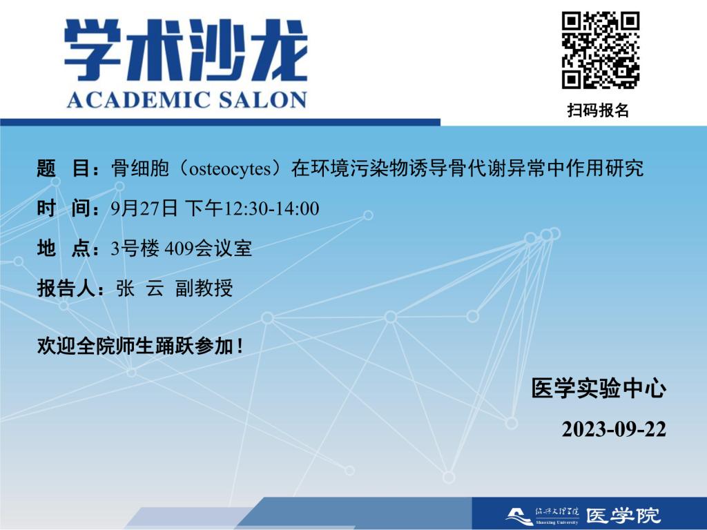 【学术沙龙】骨细胞(osteocytes)在环境污染物诱导骨代谢异常中作用研究