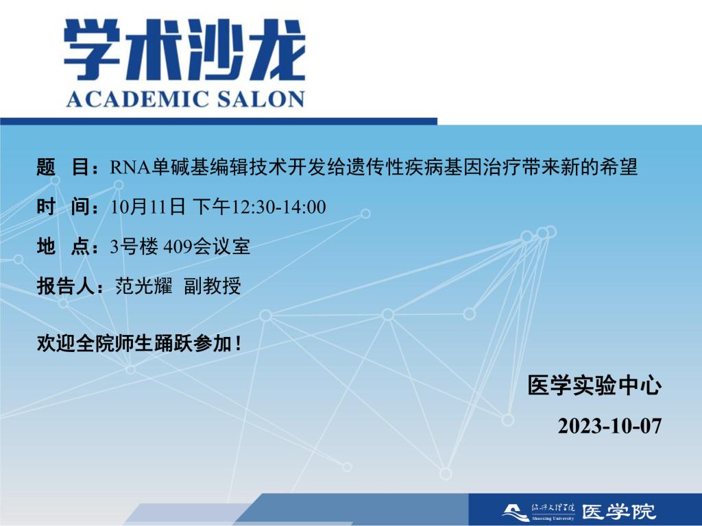 【学术沙龙】RNA单碱基编辑技术开发给遗传性疾病基因治疗带来新的希望