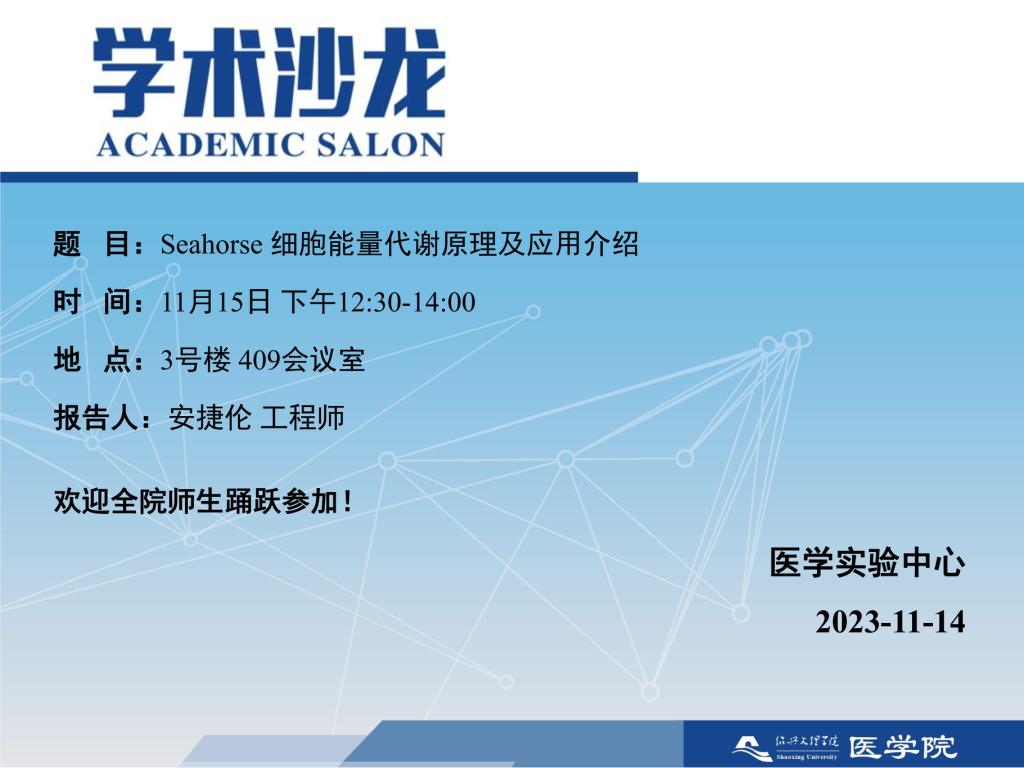 【学术沙龙】Seahorse 细胞能量代谢原理及应用介绍