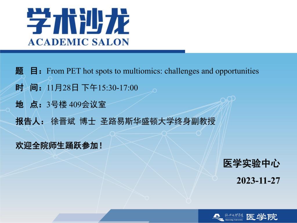 【学术沙龙】From PET hot spots to multiomics: challenges and opportunities