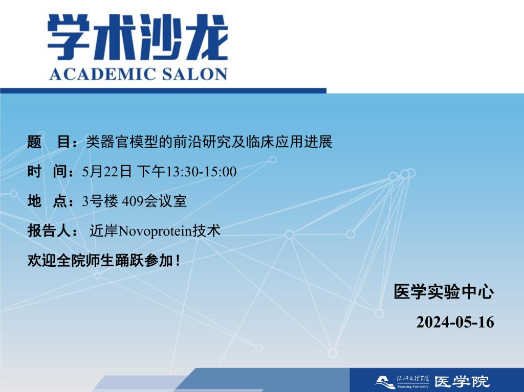 【学术沙龙】类器官模型的前沿研究及临床应用进展