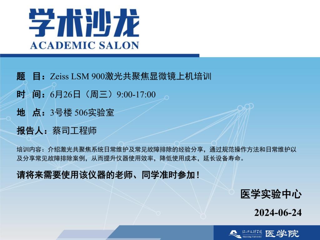 【学术沙龙】Zeiss LSM 900激光共聚焦显微镜上机培训