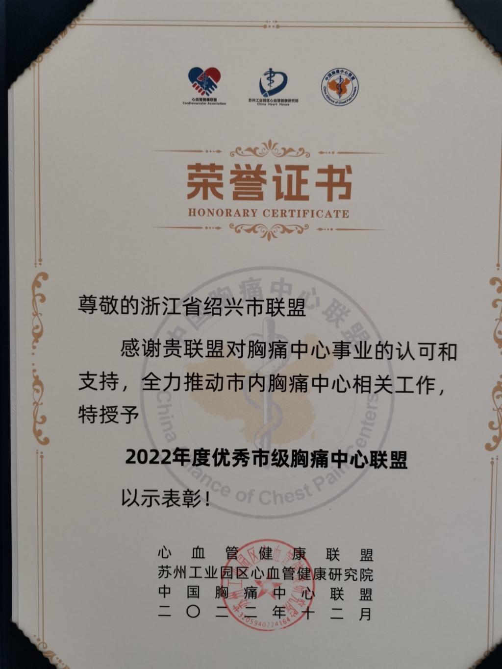 【图片新闻】绍兴获中国胸痛中心联盟表彰