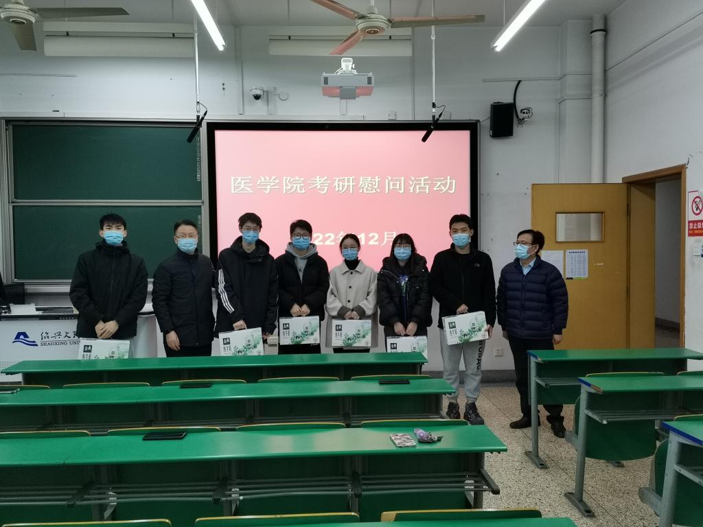 郭航远了解了在座学生的报考和复习情况,询问大家在学校的学习生活状态。他表示,医学生在校和实习期间,要加强学习,多做科学研究,提高综合能力与核心竞争力,同时提升医学人文修养,争做一名仁术兼修,知行合一的新时代医学生。他希望考研同学能根据硕士研究生培养方向积极做好相关准备,在硕士研究生复试中夯实医学基础理论,提升科学研究能力,不断增强竞争力。同时他希望同学们在本科和读研期间要有的放矢,不断完善自己,致力于实现自己的医学理想。最后,他嘱咐考研同学,在目前的疫情形势下,要注意防护和保暖,加强身体锻炼,注重身心调节,劳逸结合,放平心态,轻松应考,并预祝大家考研取得理想成绩,实现青春目标。