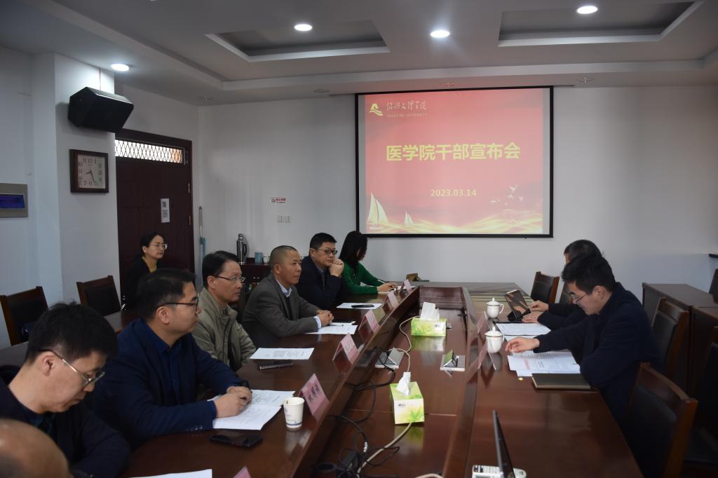 3月14日,学院召开领导干部任职宣布大会,校党委副书记沈赤、党委组织部副部长于响生出席,院党委书记吴剑平主持会议。