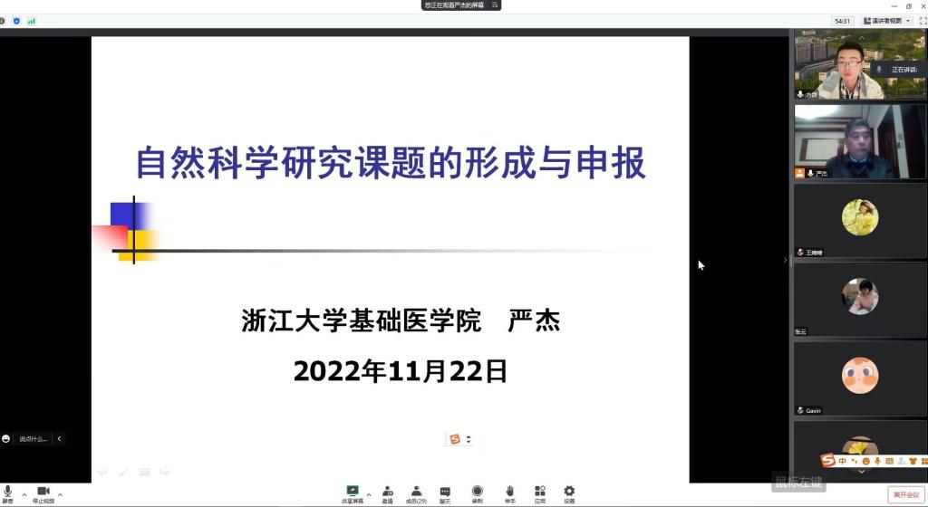为做好2023年度自然科学基金项目组织申报工作,11月24日晚上,我院线上召开《自然科学研究课题的形成与申报》主题会议。校“鉴湖学者”讲座教授、浙江大学开云最新官方教授,博士生导师严杰教授作为特邀专家出席会议。