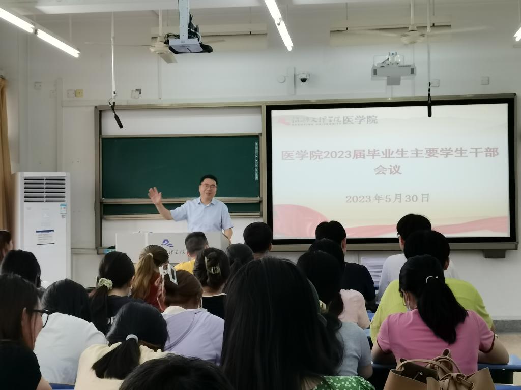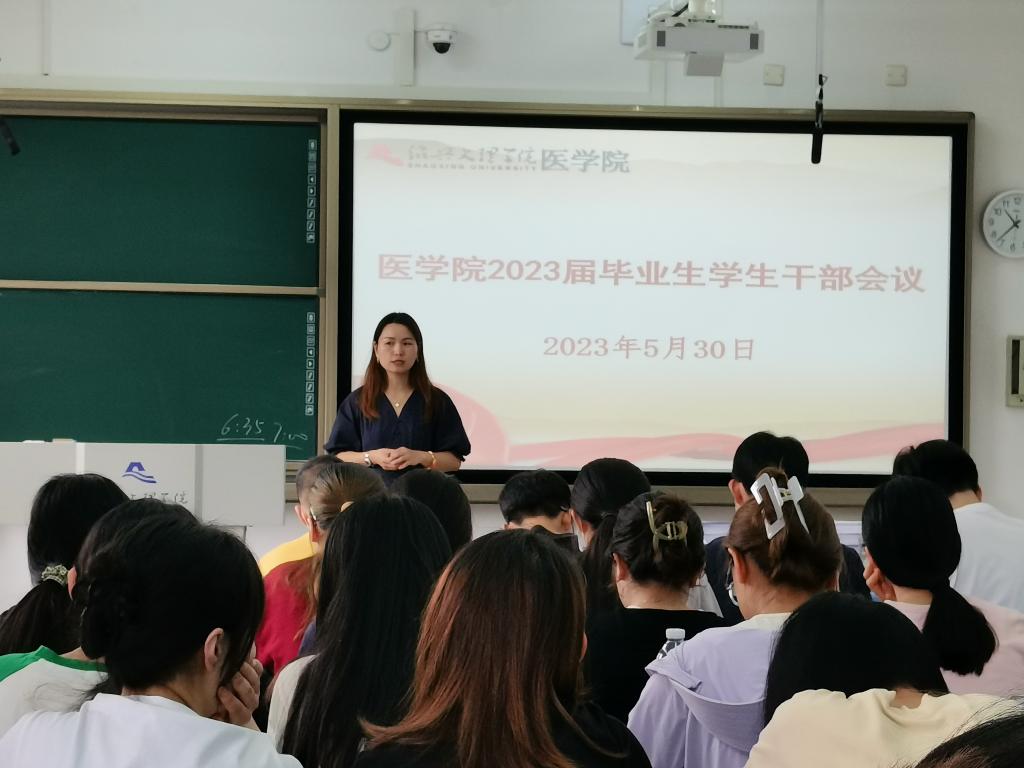 5月30日上午,我院在财贞楼311教室召开了2023届毕业生主要学生干部会议,院党委副书记林国旗,院团委书记杨荧以及2023届毕业生主要学生干部参加会议。会议由学生科负责人顾玲玲主持。