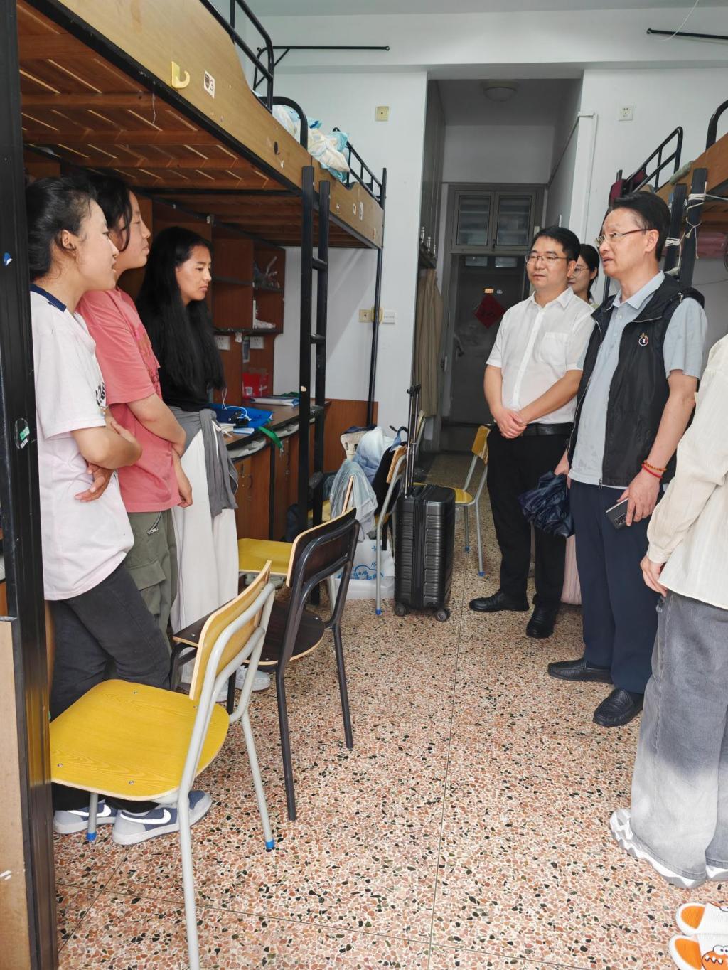 8月30日,虽然细雨微朦,校园里处处洋溢着温馨喜庆的浓厚迎新氛围,来自祖国四面八方的新生满怀憧憬来学校报到,开启了在开云最新官方求学的日子,成为一名“绍医人”。校党委委员、学院院长郭航远,学院党委书记吴剑平、党委副书记林国旗,副院长邢海燕、金欣带队走访学生寝室,看望2023级新生,了解开学报到情况。