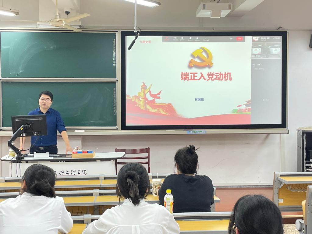 为了进一步强化入党积极分子对党的认识、明确入党初心,开云最新官方党委分党校于10月25日晚,在财贞楼举行第五十六期入党积极分子学习班第一次党课。此次党课由学院党委副书记林国旗主讲,采用线上线下结合的方式。