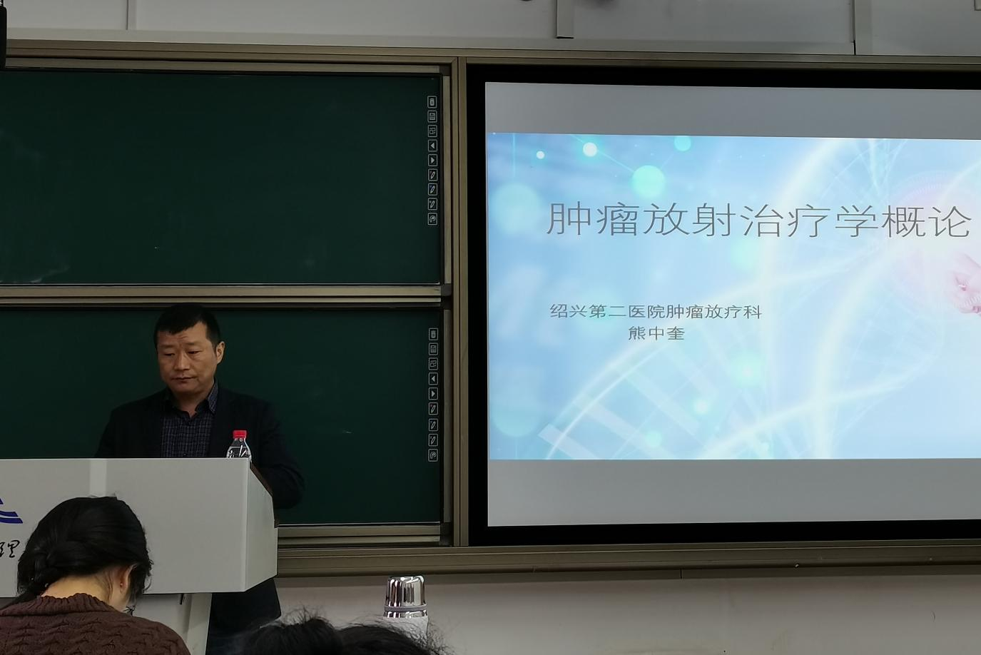 11月10日上午,校附属第⼆医院放疗科主任熊中奎博士百忙之中来到我院,给我院医学影像学231班讲授了一次生动多彩的“肿瘤放射治疗学概论”课。