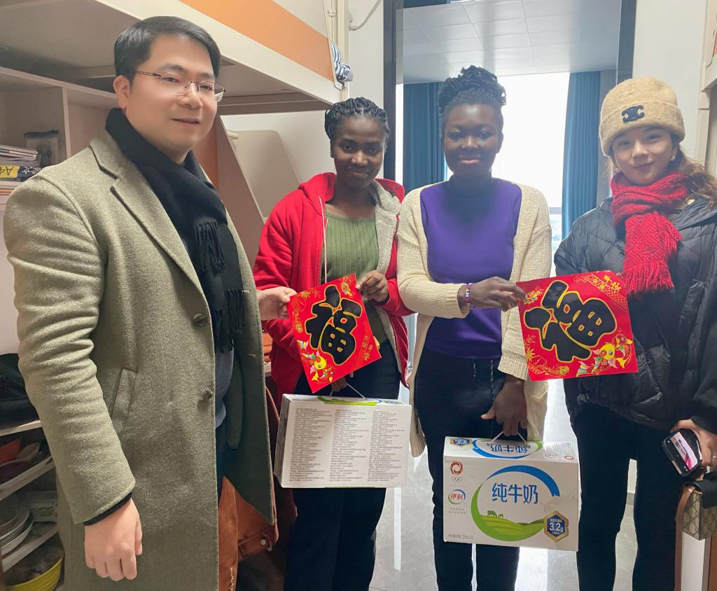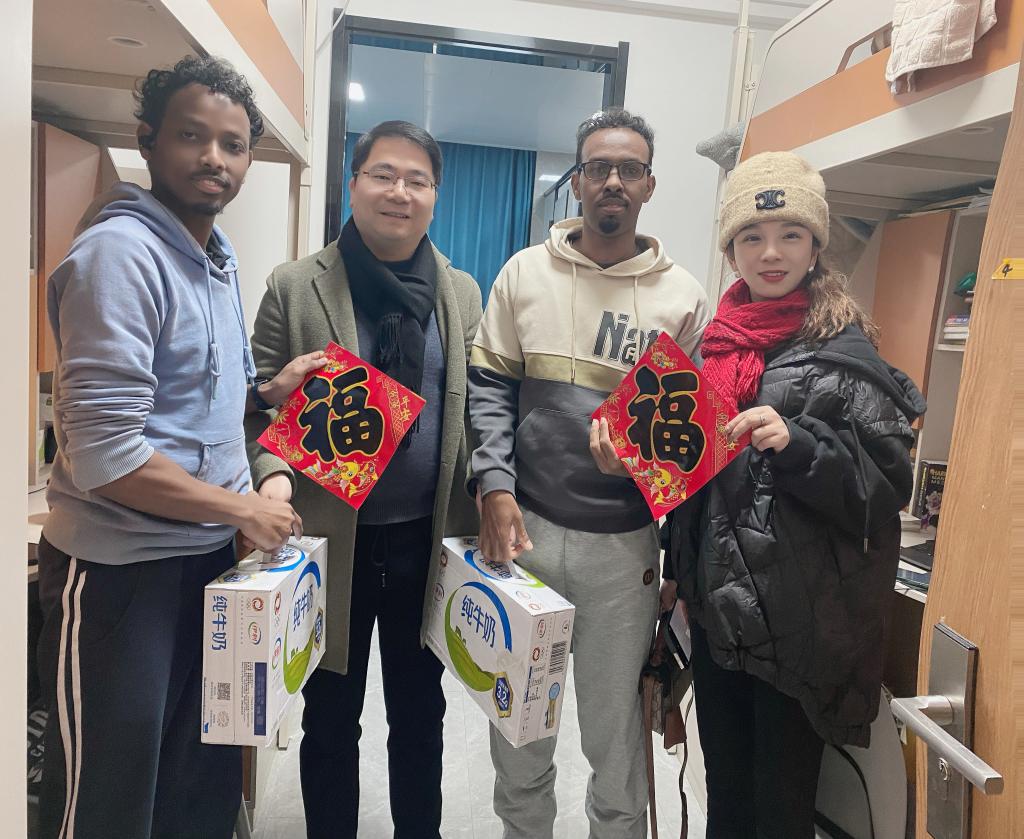 1月27日下午,开云最新官方党委副书记林国旗、学生科主管陈盈盈和国际生班主任等走访慰问了我院寒假留校国际生。
