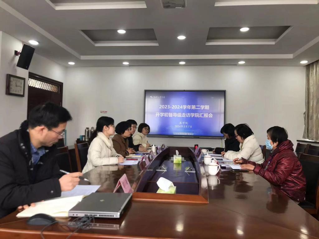 3月7日上午,刘丽华、赵梁红、王瑾、陈三妹四位校教学督导走访学院开展期初教学检查工作。副院长邢海燕、金欣,党委委员、教研科科长马国庆,医教协同办主任陈魏燕及教研科、研究生办相关人员参加汇报会。
