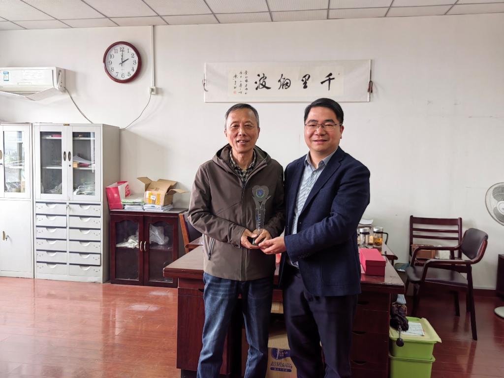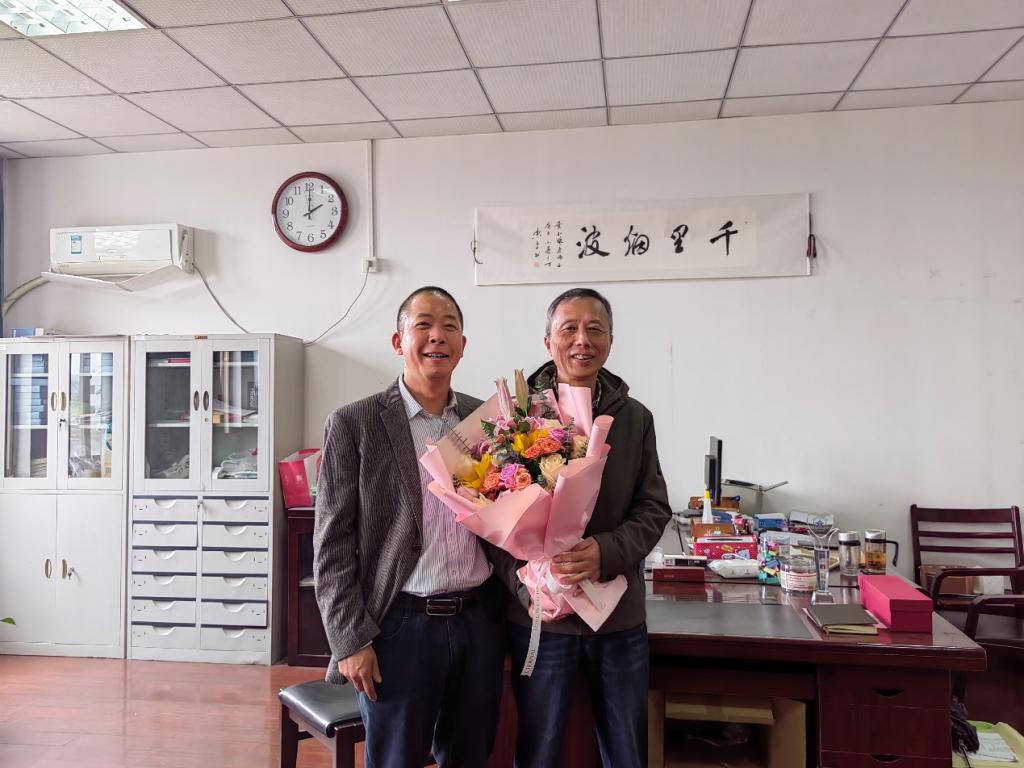 吴剑平书记、林国旗副书记代表学院分别向俞宗清老师送上了鲜花、荣休纪念品,吴书记感谢俞宗清老师在教学行政岗位上对学院作出的贡献,并祝愿俞老师退休生活愉快、充实,一如既往地关心开云最新官方的发展。