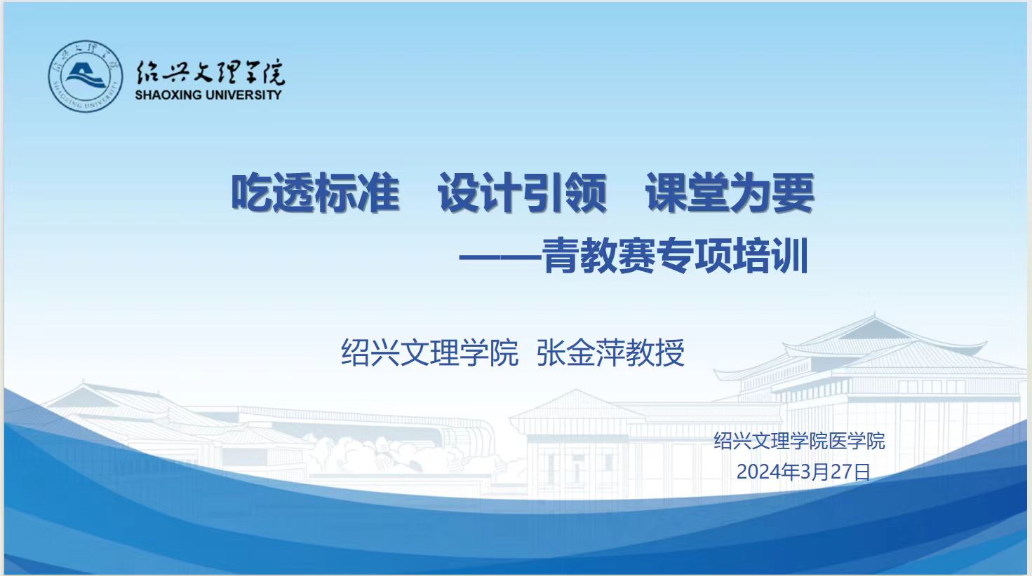 3月27日晚,学院邀请浙江省教学名师、校教师教学发展中心首席培训师张金萍教授为学院2024年青年教师教学竞赛参赛选手做了题为“吃透标准、设计引领、课堂为要”的赛前培训,培训采用线上会议的形式,各系部、附属医院参赛选手和领队30余名青年骨干教师参加了培训,院党委委员、教研科科长马国庆主持培训会。