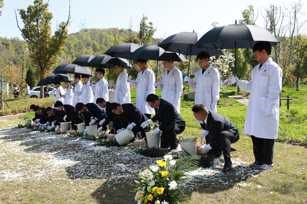 3月29日上午,“生命·礼赞”2024年人体器官(遗体、组织)捐献缅怀纪念活动在越城区官山生态陵园内的绍兴市“生命礼敬园”举行,为完成“无语良师”使命的10位遗体捐献者举行了集体草坪生态安葬,让这些大爱的平民英雄“荣耀回家”。