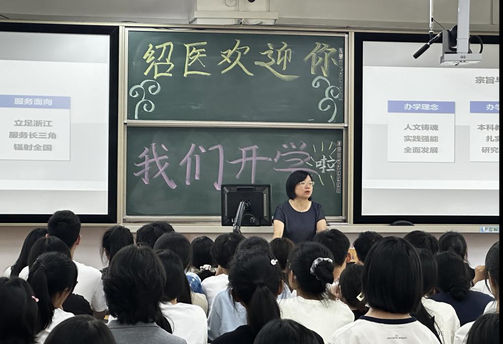 8月30日,护理系在2号楼315教室举行了2024级新生始业教育。护理学专业全体本科新生参加本次讲座。讲座内容包括新生班主任介绍、护理学专业教育、学习生活导航三个部分。讲座由护理系沈禹聪主持,护理系主任孙一勤教授、护理系副主任徐水琴副教授、新生班主任沈雪艳老师、夏寒微老师参加。