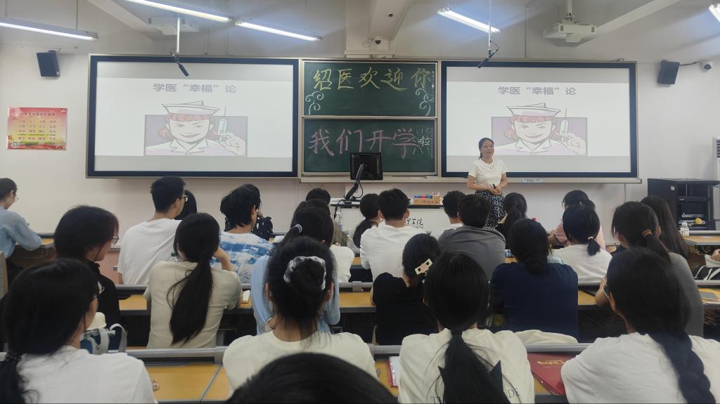 徐水琴副主任围绕“大学生活”这一主题,为新生们描绘了一幅丰富多彩的大学生活蓝图。她以学习、创新、生活三大板块为切入点,深入浅出地讲述了学医之路的艰辛与荣耀,鼓励同学们要勇于挑战自我,积极参与各类学术竞赛和社团活动,全面提升个人素养与综合能力。徐水琴副主任还温馨提醒新生们,要珍惜并享受大学时光,学会平衡学习与生活,让大学生活成为一段充满爱与成长的旅程。