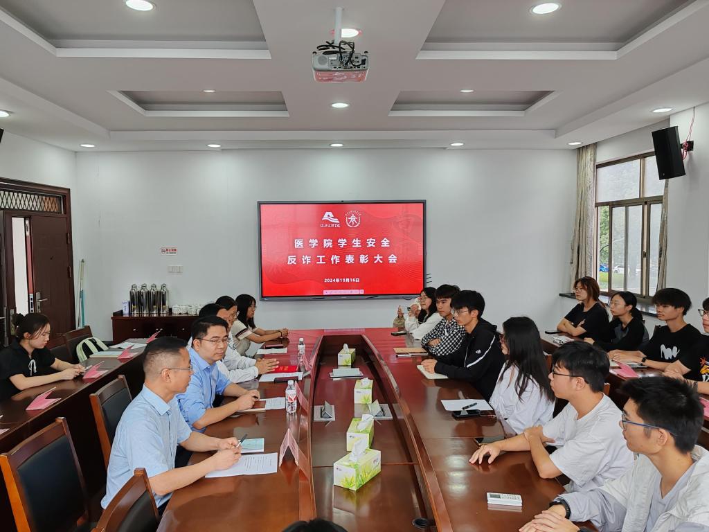 10月16日中午,我院在1号楼219会议室召开安全反诈工作表彰大会。院党委副书记、纪委书记林国旗、公安局驻绍兴文理学院警务站专员张文生出席会议。辅导员班主任代表、全院各班安信委员等40余人参加会议。