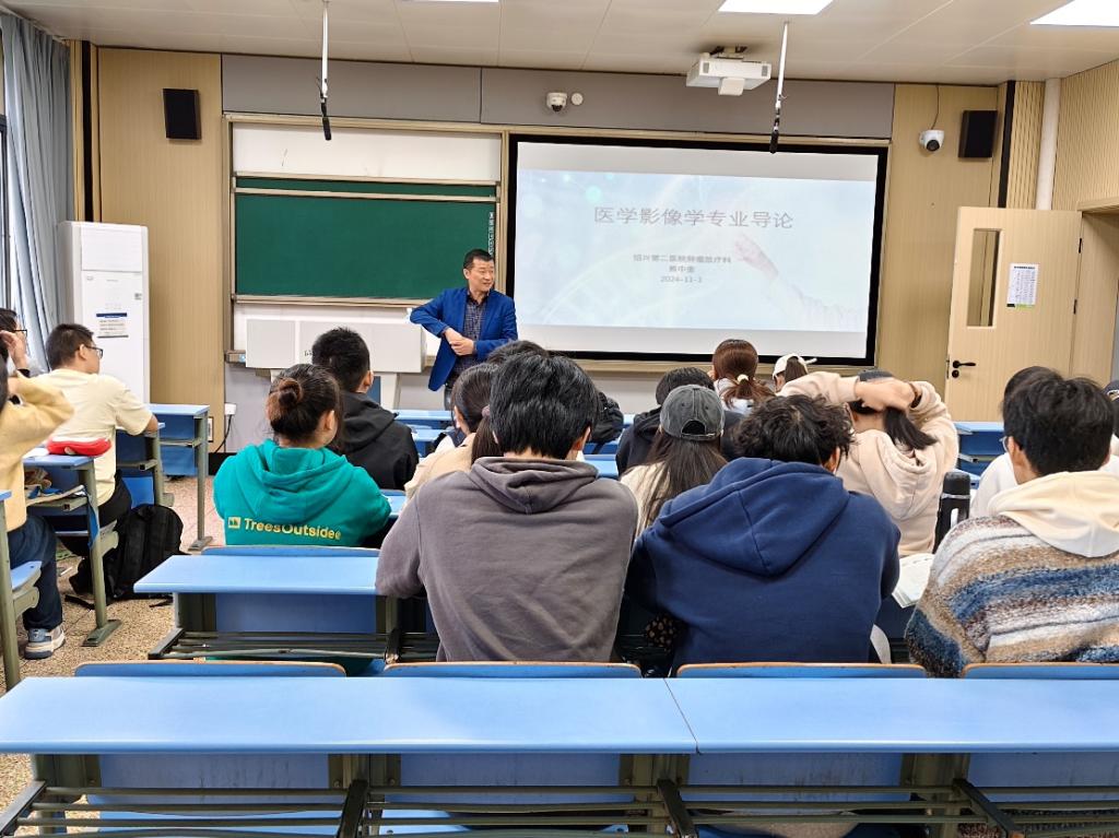 11月1日上午,校附属第二医院放疗科主任熊中奎博士应邀来到我院,给医学影像学专业24级学生讲授了一堂生动有趣的“医学影像学专业导论”课。