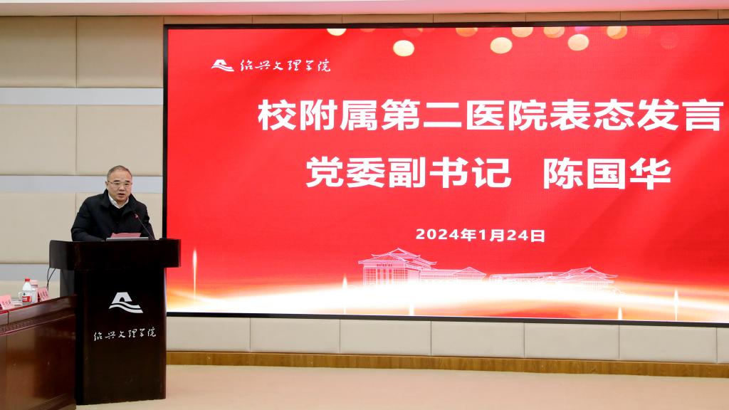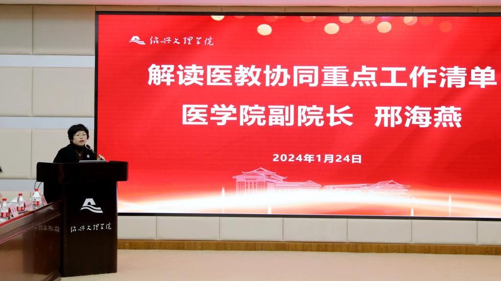 1月24日,校地医教协同推进会暨临床医学专业认证启动会在河西校区图书馆一楼报告厅举行。学校副校长柳国庆,绍兴市卫健委党委书记、主任王宏达,绍兴市卫健委副主任金红柱、学校教务处处长方小利、学校教育质量评估中心主任祝立英,绍兴市卫健委相关职能处室负责人、学校相关职能部门负责人,各附属医院主要领导、科教处(科)负责人,各社区卫生服务中心主要领导、科教科负责人,开云最新官方党政领导班子成员、科室、系(部)、中心负责人,临床医学部全体教师参加会议。会议由开云最新官方党委书记吴剑平主持。